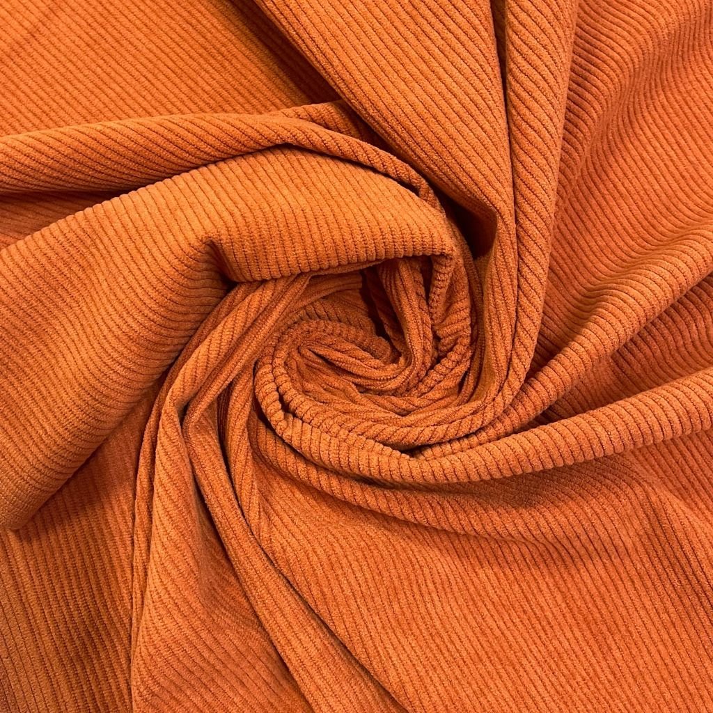 Плотный, и в то же время приятный материал с матовым блеском по лицевой стороне и нежной бархатистой поверхностью. На лицевой стороне классический ворс, создающий фактуру в полоску. Хорошая плотность ткани обеспечивает ее высокую износостойкость. Вещи из вельвета всегда актуальны, удобны в носке и не мнутся. Ткань прекрасно подходит для пошива свитшотов, платьев, юбок, а также спортивных костюмов.